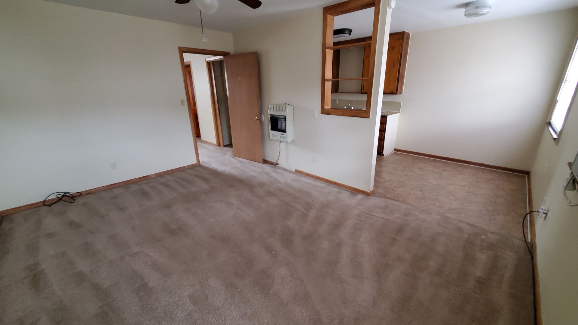 One bedroom unit has fresh paint, steam cleaned carpets, and professionally cleaned. All appliances included. Ceiling fans in bedroom and living room. AC unit in living room. Large walk in closet. Off street parking provided.