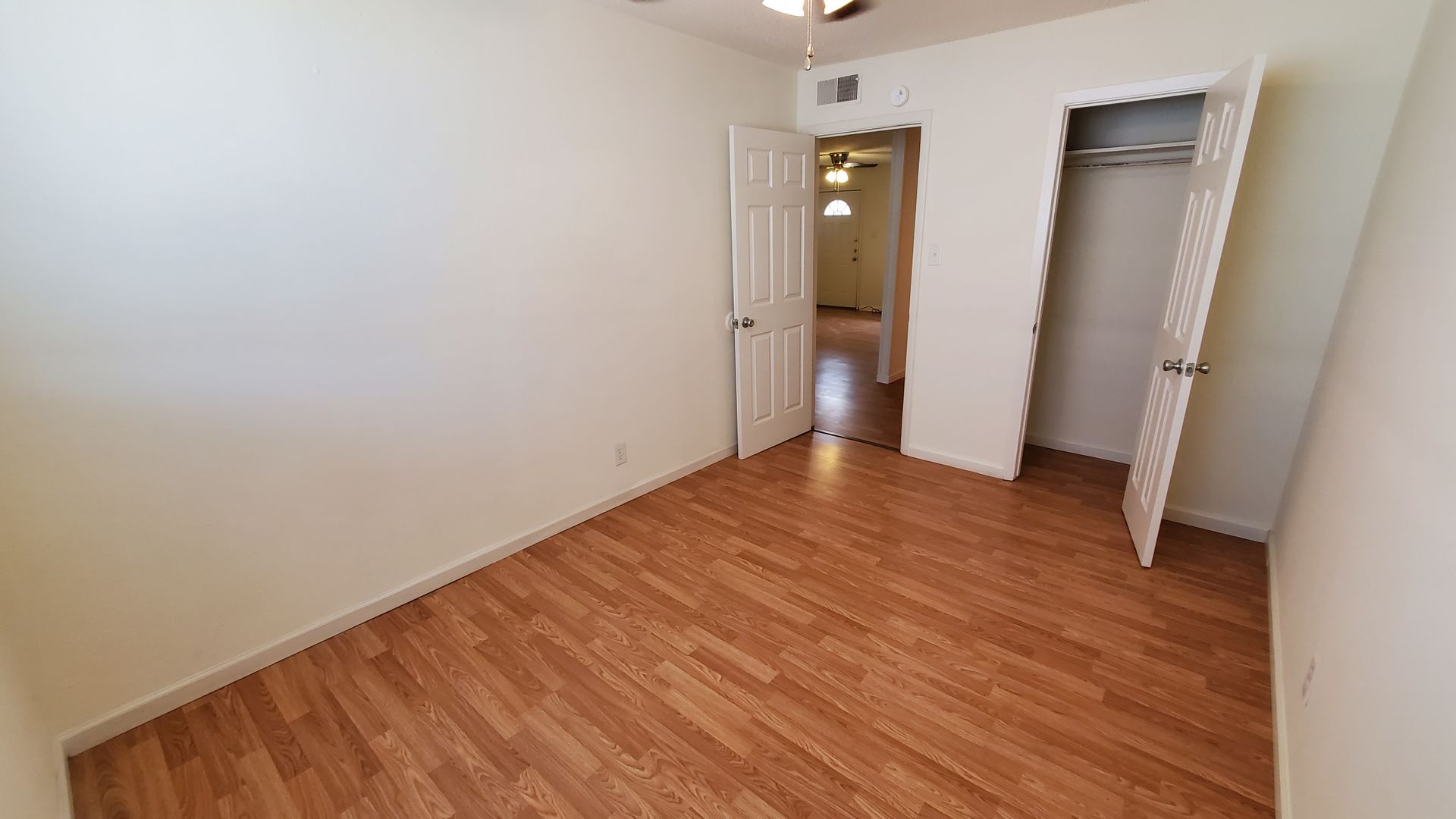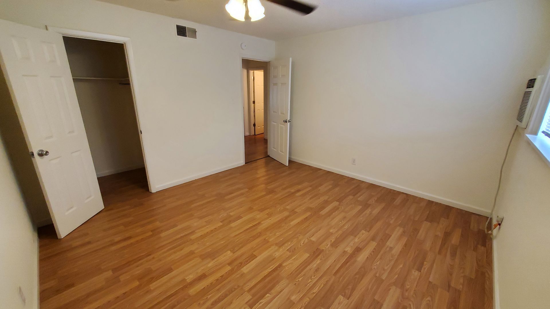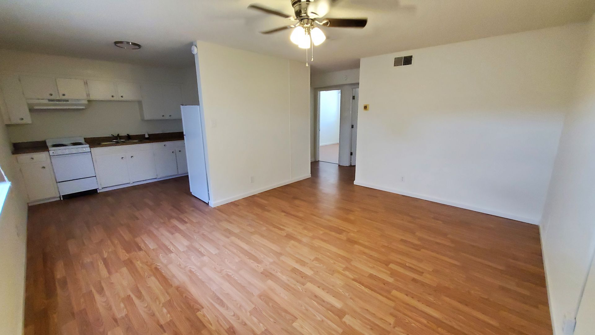 Two bedroom one bathroom apartment with 752 sq. ft.. Kitchen includes stove/oven & fridge. Ceiling fans in every room. Unit has been freshly painted, professionally cleaned. Wood laminate flooring throughout. Tenant parking provided. This apartment is on the second floor. Laundry facility on site.