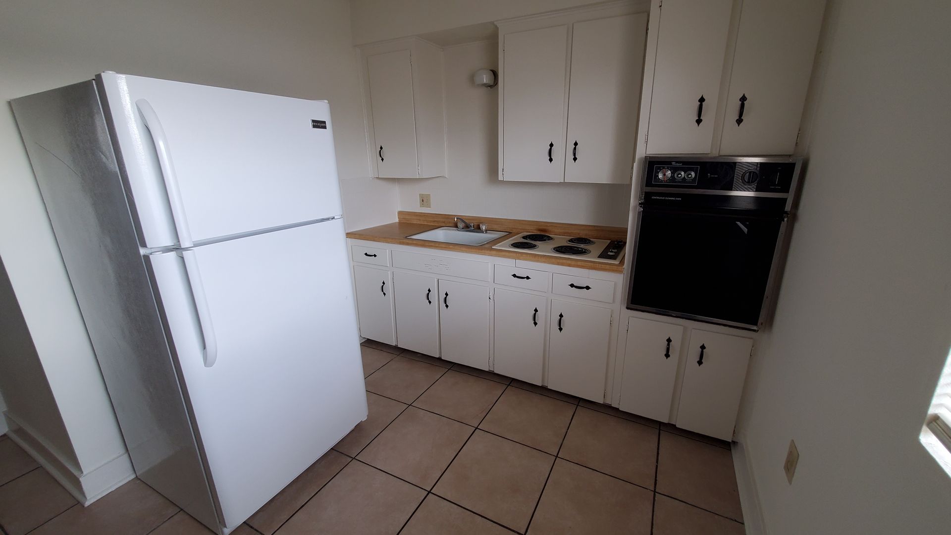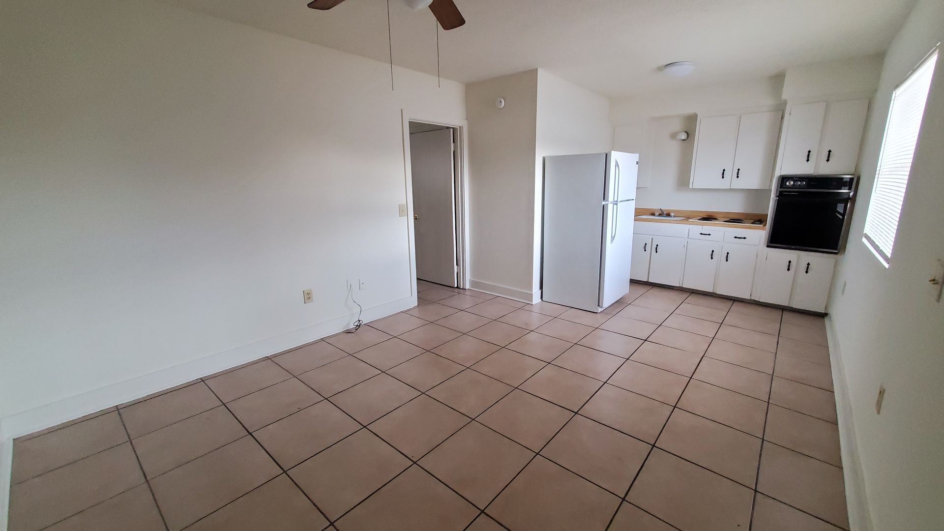 One bedroom one bathroom unit with 476 sq. ft. Kitchen has stove/oven and fridge. Ceiling fan in living room and bedroom. Ceramic tile throughout. Big walk in closet, 2 smaller closets, and built in drawers. This unit has been freshly painted and professionally cleaned. There is a laundry facility on site. Walking distance to shopping. Off street parking provided for tenants.